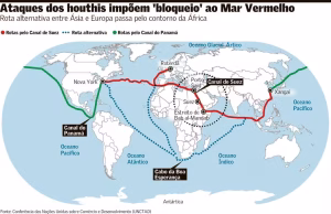 Os rebeldes Houthis, baseados no Iêmen, anunciaram que navios comerciais que transitarem pelo Mar Vermelho sem escalas no porto de Haifa, em Israel, não serão
