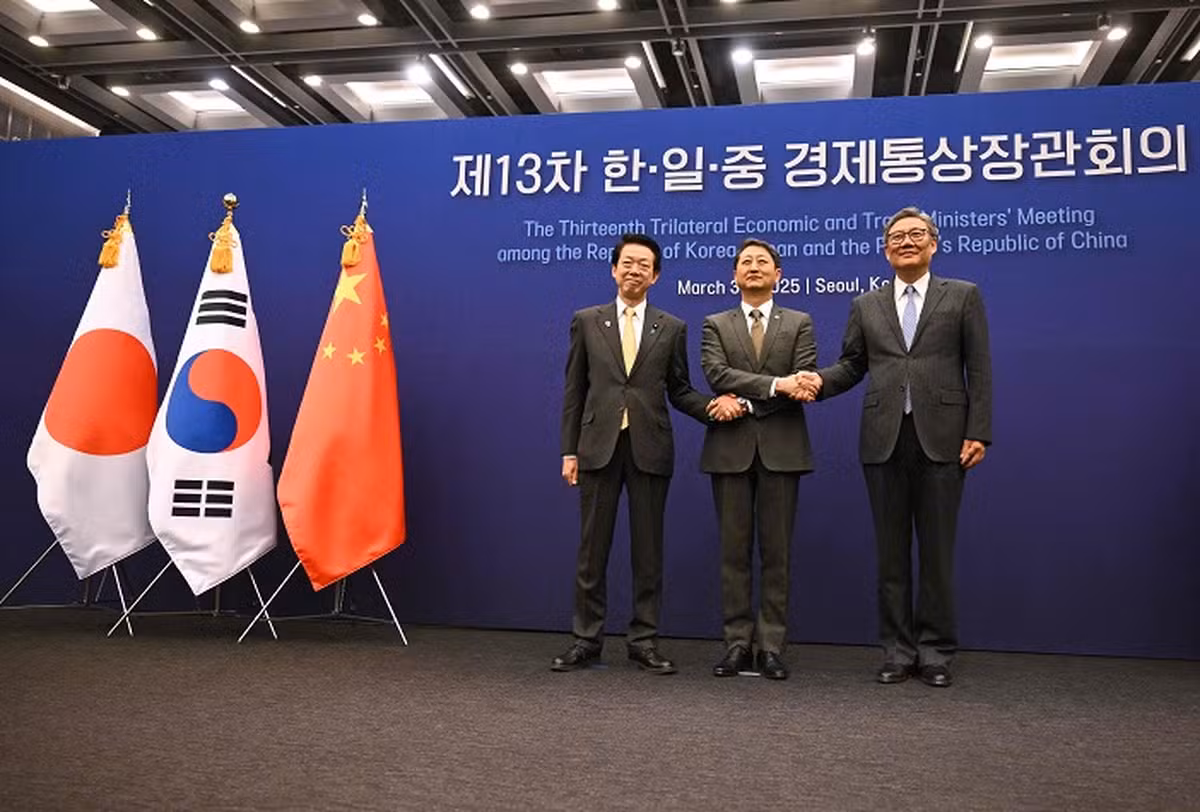 Em um momento marcado por tensões comerciais globais, os ministros de Comércio da Coreia do Sul, China e Japão se reuniram no domingo (30) para a 13ª Reunião Trilateral de Ministros de Comércio e Economia, com o objetivo de discutir o avanço da cooperação econômica entre os três países. O encontro ocorre em um contexto de políticas protecionistas no comércio internacional, especialmente com o retorno de Donald Trump à presidência dos Estados Unidos.